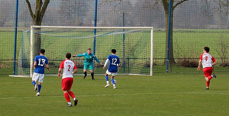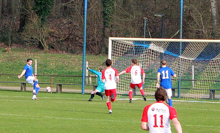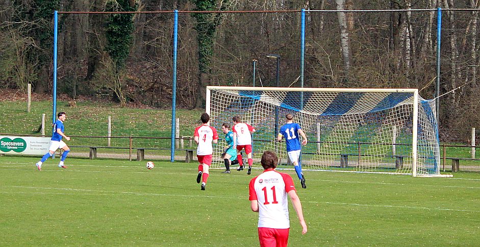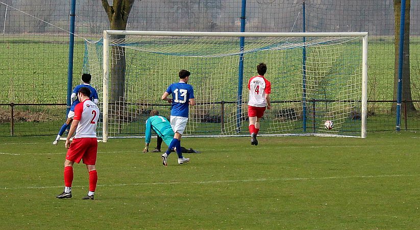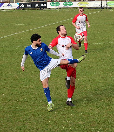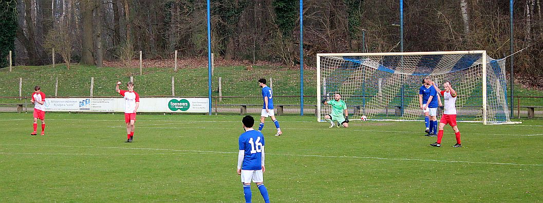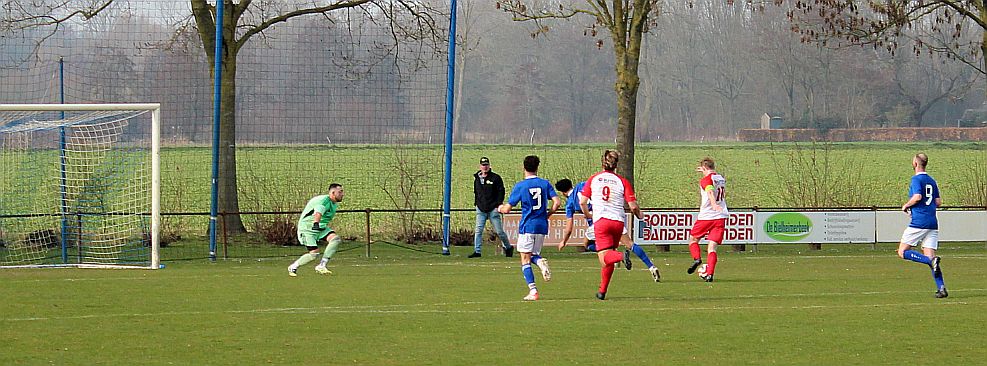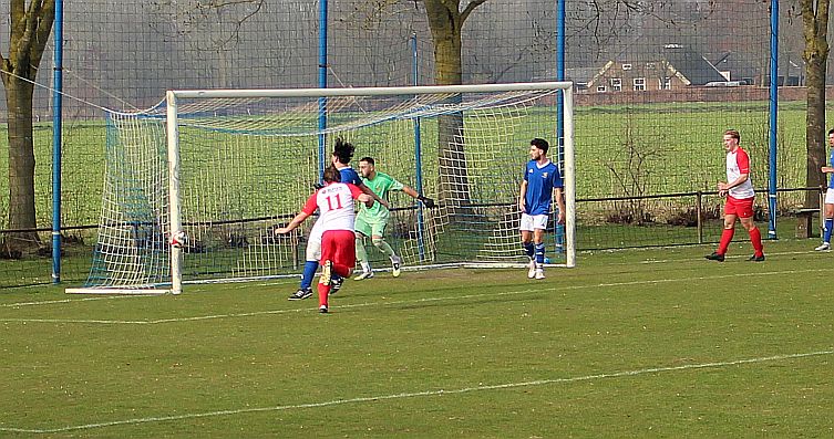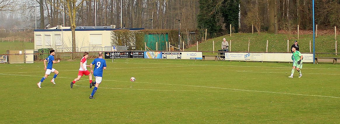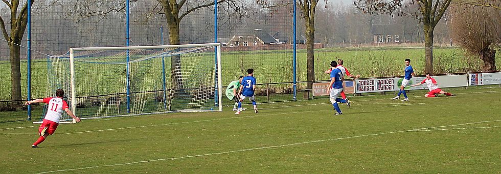 De mannen van coach Elders begonnen overtuigend aan het duel en bepaalden vanaf het begin de wedstrijd. Al snel werden via mooie combinaties twee goede schietkansen gecreëerd maar die waren vooralsnog niet besteed aan Bas en Sven. Ook Bram kreeg tot tweemaal toe een beste kans maar toen ook dit geen goal opleverde, werden de aanwezige Harfsense toeschouwers ondanks het goede spel toch een beetje benauwd omdat een bekende voetbalwet leert dat het missen van vele kansen aan de ene kant vaak betekent dat het aan de andere kant wel direct raak is. Dat was vandaag ook bijna zo want na een half uur spelen kwam Doetinchem voor het eerst goed door en kreeg het direct een reuzenkans. Gelukkig voor Harfsen werd de bal van slechts een meter of vijf voor de goal van Thom over geschoten maar dit had maar zo tegen alle verhoudingen in een voorsprong voor Doetinchem kunnen betekenen.