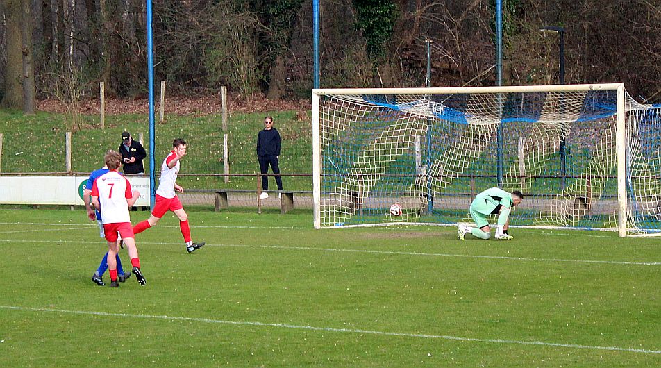 Na 40 minuten werd de ban voor Harfsen eindelijk gebroken. Jochem werd weggestuurd en kon alleen op de keeper af en maakte keurig af (0-1). De grensrechter deed nog verwoede pogingen om de boel te redden maar scheidsrechter Hofman wuifde het dubieuze vlagsignaal resoluut weg. Direct na de eindelijk verkregen voorsprong moest Thom voor de eerste keer handelend optreden en met een uitstekende redding voorkwam hij een snelle gelijkmaker. Het leek op een 0-1 ruststand uit te draaien maar dat was buiten Jochem gerekend. Na een mooie actie schoot hij op slag van rust knap binnen in de verre hoek achter de vergeefs duikende Doetinchemse doelman (0-2).