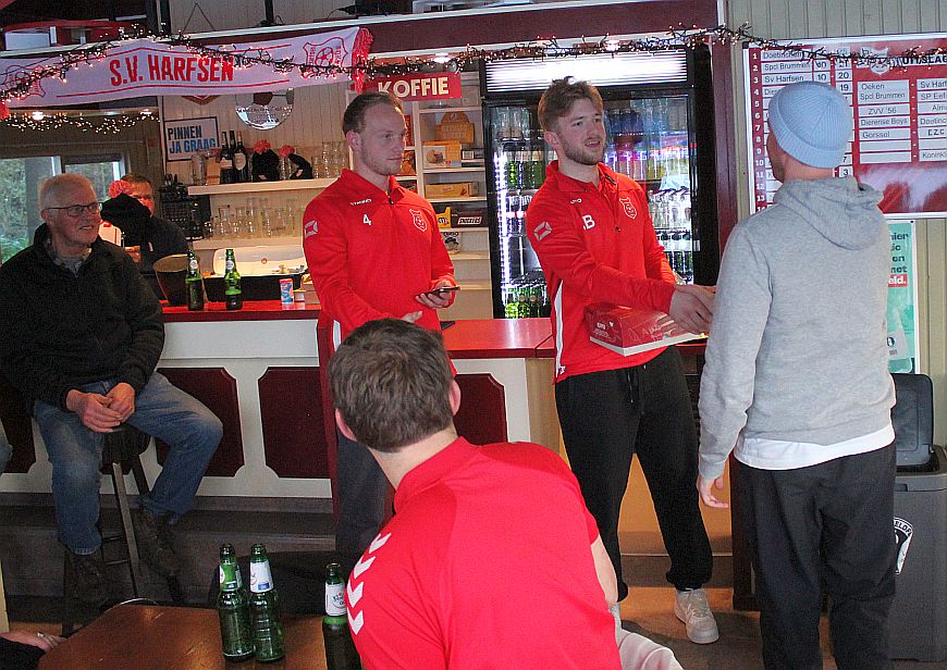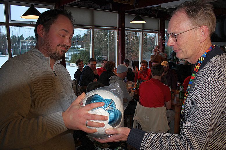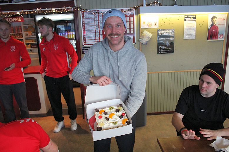 Verder kan Eddie aankondigen dat het conract met Erwin Elders wordt voortgezet. Van beide kanten is er veel vertrouwen in de toekomst en ook de spelers zijn content met de trainer. Eddie overhandigd ditmaal geen bloemen maar een voetbal als cadeau voor het thuisfront.