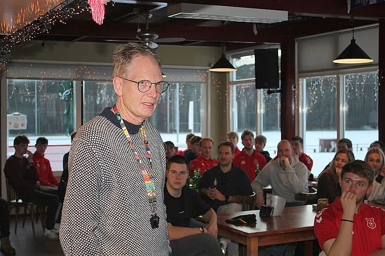 Inmiddels zit de kantine vol en kan de voorzitter Eddie zijn speech kwijt. Het afgelopen seizoen wordt doorgenomen. Niet alleen de resultaten van het eerste maar ook de huidige rijzende ster; het tweede. Natuurlijk ook de opkomst van de Dames die dit jaar vol enthousiasme met hun competitie zijn begonnen en volop trainen.