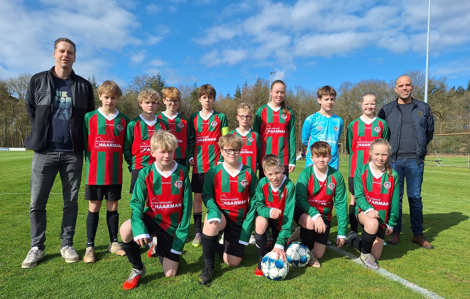 Op zaterdag 4 april heeft JO13-1 voor het eerst gespeeld in hun nieuwe shirts. Deze prachtige shirts zijn mogelijk gemaakt door de sponsoring van Aannemersbedrijf Haarman.