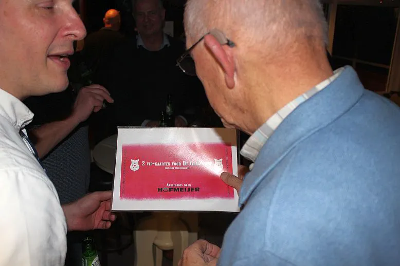 De jubileumcommissie had voor leuke prijzen gezorgd. Luxe Bier- en wijn-paketten, een Grolsch BBQ schort, moderne waterdichte rugzakken maar de meest belangstelling was er voor de SVH sjaaltjes en paraplu’s die door Tonnie Holmer beschikbaar waren gesteld. De hoofdprijzen waren VIP kaarten. De firma Osso had een VIP tribunekaart voor de GAE, die werd gewonnen door Bertus Wechstapel. De hoofdprijs, twee VIP kaarten aangeboden door Hofmeijer, voor een wedstrijd van de Graafschap (daar kan men Harfsenaar Maas Willemsen zien spelen) werd gewonnen door Joop Peet.