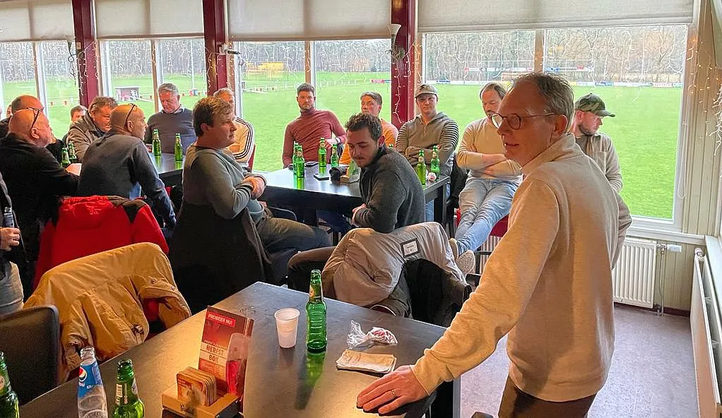 De kantine zit ram vol als voorzitter Eddie Leunk het woord neemt. Als gebruikelijk neemt hij het jaar door met hoogte en dieptepunten. Waarbij hij natuurlijk eerst stilstaat bij het overlijden van twee markante en vandaag zeer gemiste ere-leden Willem en HJ. Er wordt hulde gebracht aan hun jarenlange inzet met een indrukwekkend applaus.