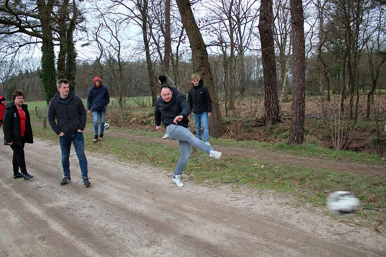 Vanwege het weer kon er niet gevoetbald worden maar werden er teams gevormd om te gaan klootvoetballen (een voetbalvariant van klootschieten). Door de straffe wind was dat nog niet zo simpel. Een enkel team ging het laatste stuk door de bos, en schakelde zichzelf gelijk uit voor de winst want dat schiet niet op. Andere teams hadden weer last van uitgelaten honden, die wel raad weten met een bal. Al met al kwam er een winnaar uit maar dat was van ondergeschikt belang. De kop was fris voor de receptie.