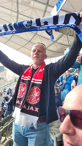Met de S-Bahn, nu wel afgestempeld, gingen we onderweg. Zichtbaar niet de enigen, afgeladen vol met Hertha BSC supporters kwamen we daar aan. Na een blauwwitte mars van 10 minuten waren we bij het stadion.