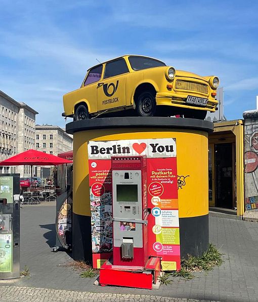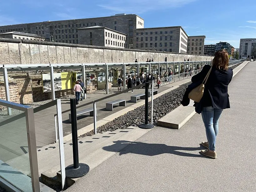 Een laatste restje van de Berlijnse muur, Checkpoint Charley, Rijksdag, Brandenburger Tor, Holocaust Monument en waar de bunker van wijlen A.H. stond. Alleen een info bord markeert nog deze plek. Het is nu een anonieme parkeerplaats.