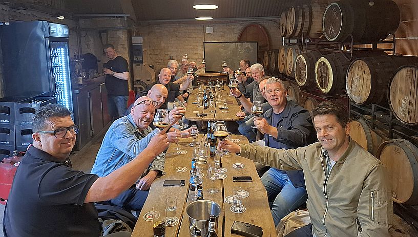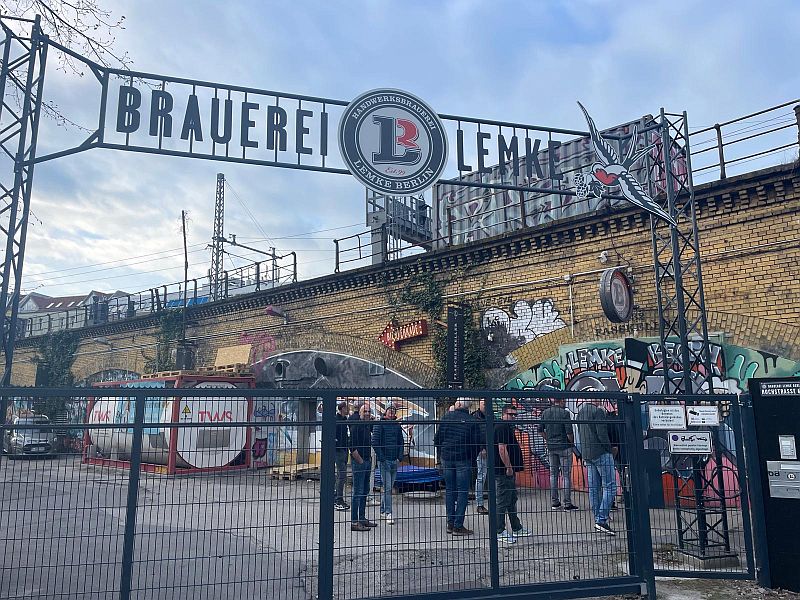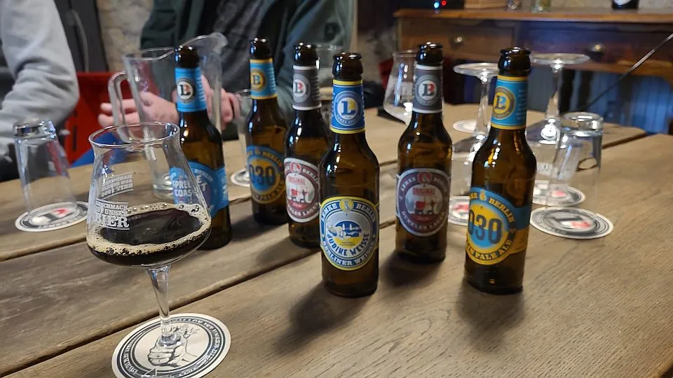 Op naar de rondleiding in de bierbrouwerij Das Lemke. Gelegen onder de bogen van de S- Bahn. Na een hartelijke ontvangsten en uitleg gingen we de brouwerij bekijken. De brouwer ging helemaal op in zijn verhaal, terwijl op een gegeven moment 14 man dacht: “Loat mor uns preuven wat ie al zo brouwt”.