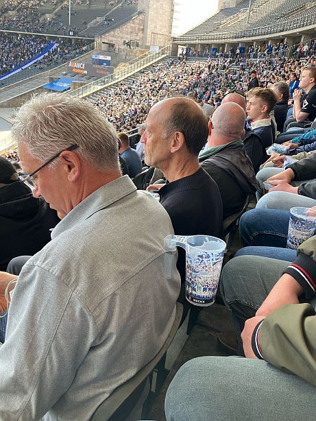 De rust was helaas te kort, net bier besteld en op het moment van afrekenen een pinstoring. Met het gevolg dat we het doelpunt van Darmstadt vlak na rust misten. Terug op onze zitplaats zagen we hetzelfde spelbeeld. Wel was een verdediger van Darmstadt zo vriendelijk om de 1-1 op het bord te zetten. Waar zo te zien beide partijen wel mee konden leven.