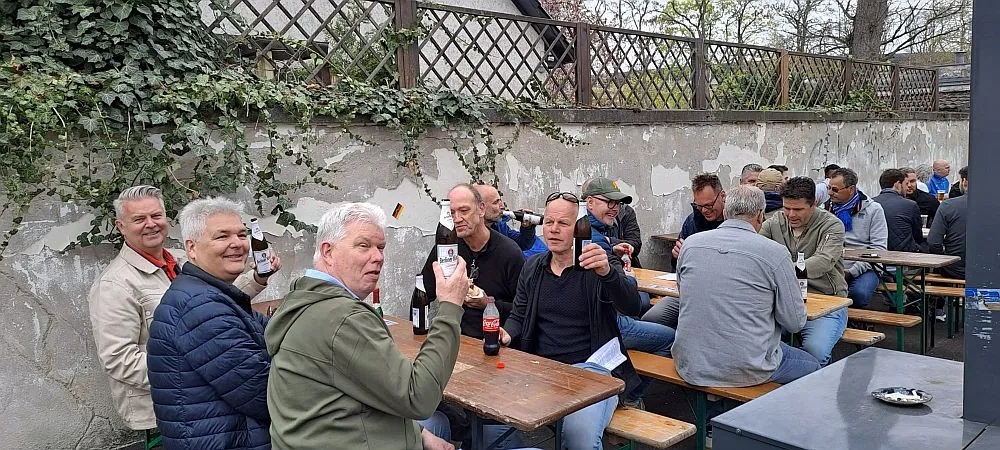 Rond 22 uur gingen we weer terug naar de Hackescher Markt. Hier pakten we eerst een terrasje, Wat overigens de gehele selectie naderhand een loopneus opleverde. De avond eindigde weer in de Ierse Pub. Zo tegen het einde kwamen we in gesprek met twee Aziatische animeerdames. Die werden door deze oud voetballers als magneten aangetrokken natuurlijk. Na een opmerking over losse knoopjes van de blouse van een van de dames ging alles even open. De heren die al op de hotelkamer waren, hebben overigens niks gemist. Wederom een korte nacht voor sommige heren.