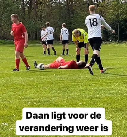 Vandaag mochten de heren van H2 een duel uitvechten met de nummer laatst van de competitie. Zelf staan we 10de dus we doen het niet slecht, maar het kan beter. Het devies was dan ook om vandaag maar weer eens een keer 3 punten te halen. De voorbereiding was zoals altijd uitstekend. Net weer genoeg spelers, bedankt Rudi (uit 45+), Tom (Bud Bundy 35+) en Stef (H3) dat jullie ons vandaag wouden versterken en uiteraard weer een aantal boetes voor het verzaken van diensten (o.a. Teddy €50,- verzetten klok kantine)! O ja, onze kapitein Bo meldde zich om vrijdagavond 23:55 nog af. Dat kan uiteraard, maar het advies is wel om een betere smoes te verzinnen dan: ‘ik ben er morgen niet bij want er vliegt een drone op het vliegveld op Gran Canaria, waardoor wij niet kunnen terugvliegen, jaja ;-).