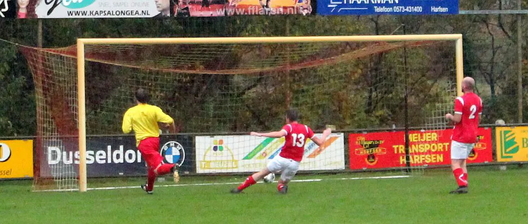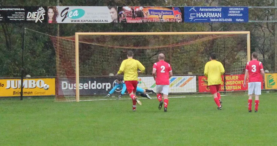 In de 3e minuut kwamen we al met 0-1 achter omdat onze keeper de bal niet goed inschatte en de aanvaller van AZSV over hem heen kon koppen. De rest van de wedstrijd was Harfsen 3 oppermachtig op het veld. Missen enkele opgelegde kansen, scoren zelfs nog, maar het was buitenspel. We beloonden onszelf dus niet. Zelfs onze topscoorder van vorig jaar Freek “Frenkel” Veeneman miste zijn scherpte en schoot in de tweede helft een penalty lekker veilig in de handen van de keeper van AZSV.