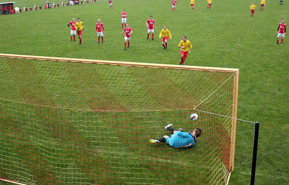 Misschien was het dan wel de lijnen van het veld want die waren net zo zichtbaar als doelpunten van ons team.