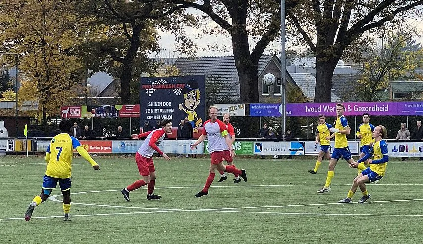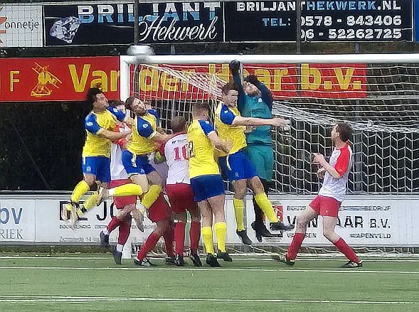 Het wordt een wat eentonig verhaal maar ook vandaag was de wedstrijd van Harfsen weer een spektakelstuk van de eerste orde. Na een 1-2 voorsprong met de rust keek Harfsen vijf minuten voor tijd tegen een vrij uitzichtloze 5-3 achterstand aan maar het laatste woord was aan de rood-witten die nooit opgaven. Via twee goals in de slotminuten waarvan de laatste in de allerlaatste seconden van de blessuretijd werd er vandaag toch nog een punt uitgesleept (5-5).