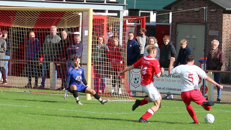 De koek is nog niet op, nu laat Bram even zijn kunsten zien. Hij goochelt met de bal in de zestien, laat drie verdedigers tollen en zet de keeper op het verkeerde been door tegendraads in te schieten. In tien minuten tijd is het opeens 3-0 voor Harfsen en de wedstrijd lijkt gespeelt.