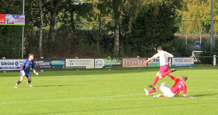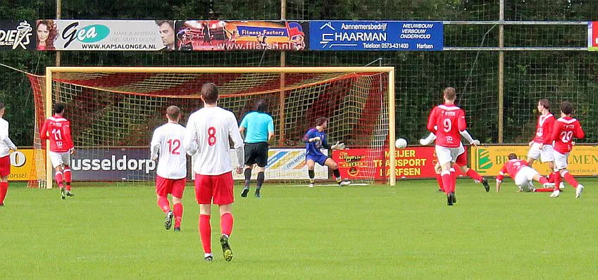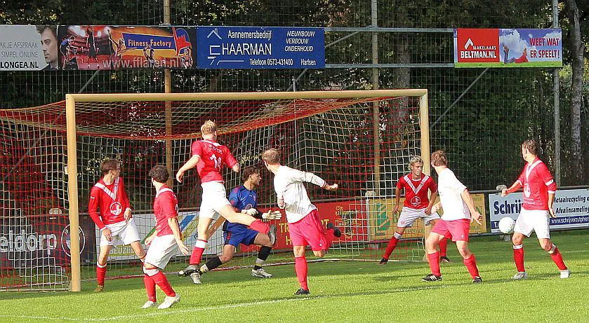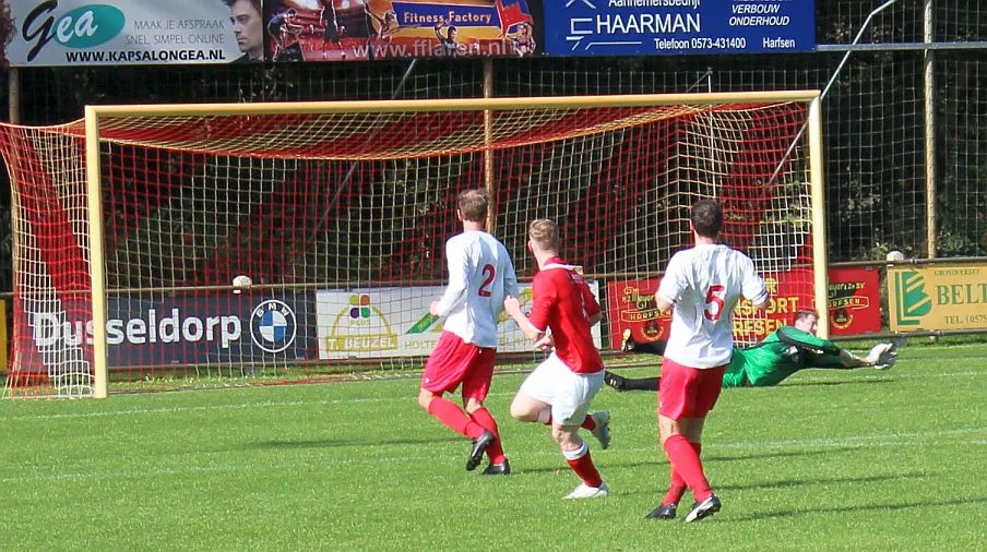 Harfsen had aan zeven minuten voldoende om het duel met Sportclub Deventer te beslissen. De thuisploeg zag in de eerste helft (0-0) twee treffers afgekeurd worden vanwege buitenspel, maar sloeg na rust driemaal genadeloos toe. Jochem Leunk, Luc Valkeman en Bram Brinkman zorgden voor de Harfsense treffers en een 3-0 voorsprong. Dat bleek tevens de eindstand. ,,Uiteindelijk hebben we verdiend gewonnen”, zo luidde het oordeel van Harfsen-trainer Erwin Elders. ,,De eerste ging gelijk op en was vrij slordig. In de tweede helft kwamen we meer aan het voetballen.” Waar Elders content was met het tweede bedrijf van zijn ploeg en de drie punten, daar baalde zijn collega van de zwakke herstart van zijn ploeg. ,,Binnen zeven minuten gooien we de complete wedstrijd weg”, had Sportclub-trainer Wouter Groot Lipman gezien. Zijn ploeg wacht daardoor nog op de eerste zege. ,,Hier moeten we lering uit trekken, want nu lopen we onderin te klooien.” Harfsen – Sp. Deventer 3-0 (0-0). 47. Jochem Leunk 1-0, 49. Luc Valkeman 2-0, 52. Bram Brinkman 3-0.