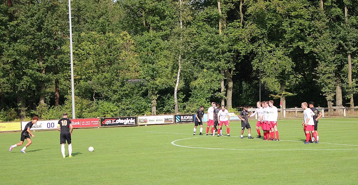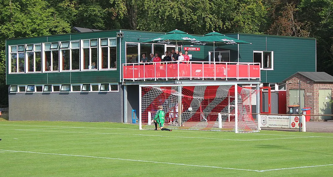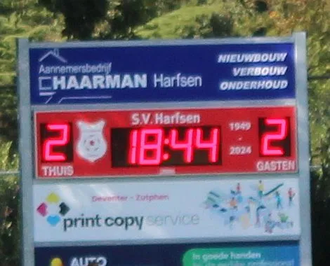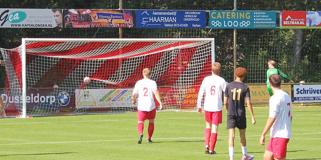 Er zijn nog wat kansen over en weer maar Harfsen haalt de rust met deze stand.