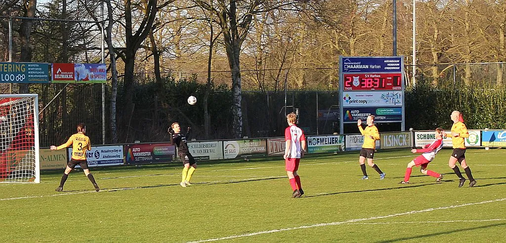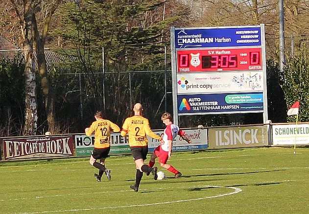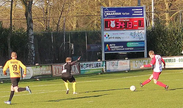Harfsen is zoals verwacht veel beter. De Boys staan één na laatste waar Harfsen de blik richt op de top 3. De eerste kans laat dan ook niet lang op zich wachten, Sven wordt de hoek ingestuurd en moet het, bij gebrek aan aansluiting, opnemen tegen twee verdedigers. Hij kapt beide Boys tot twee maal toe knap uit, alleen is de hoek te moeilijk geworden voor het schot. Daar kan de keeper makkelijk redding brengen.