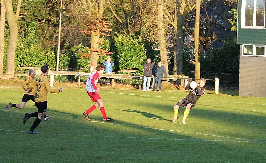 Maar zie, uit de verdrukking komen ook uitval kansen. Jochem alleen voor de keeper, mis! Arthur alleen voor de keeper, mis! Sven met een mooie solo en een stift, mis! Chiel met schietkansen, mis, mis, mis!