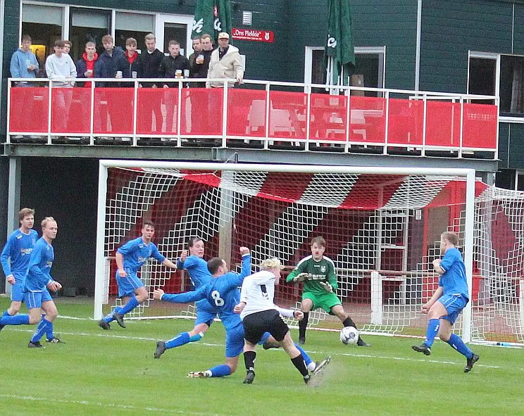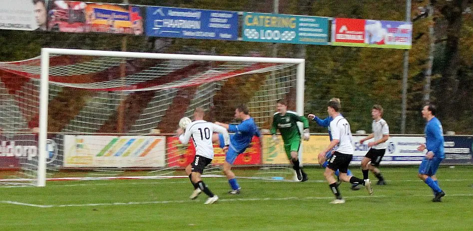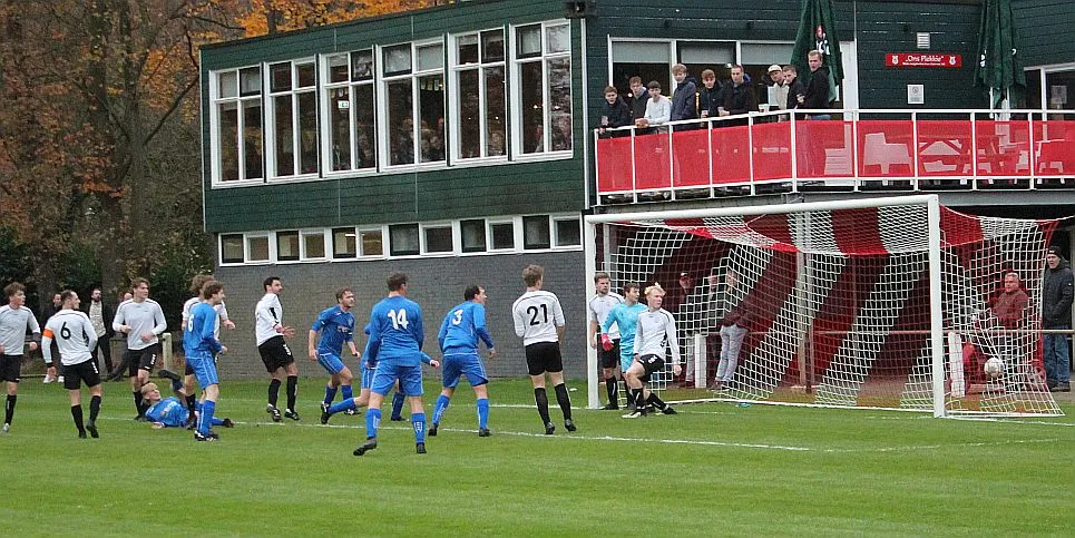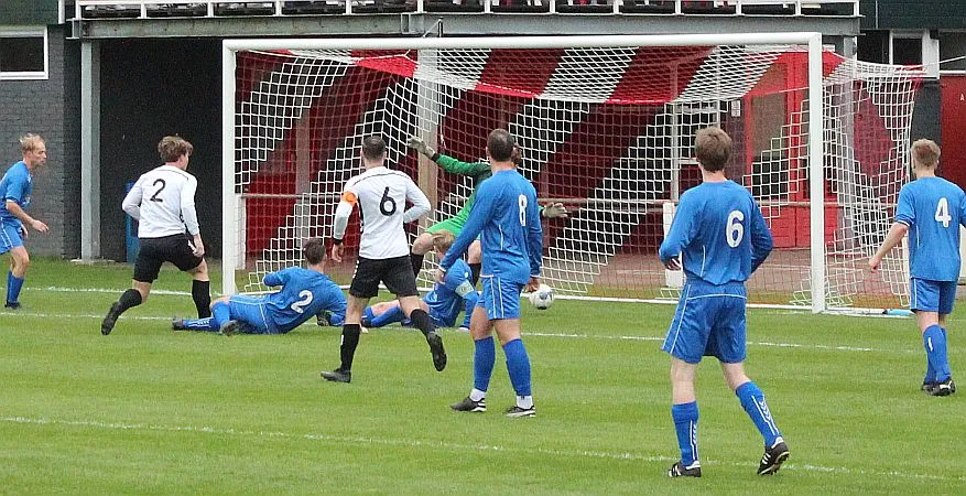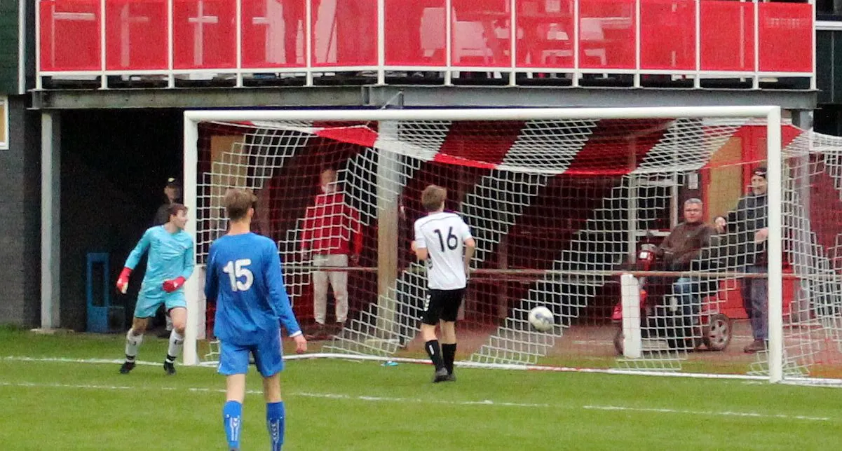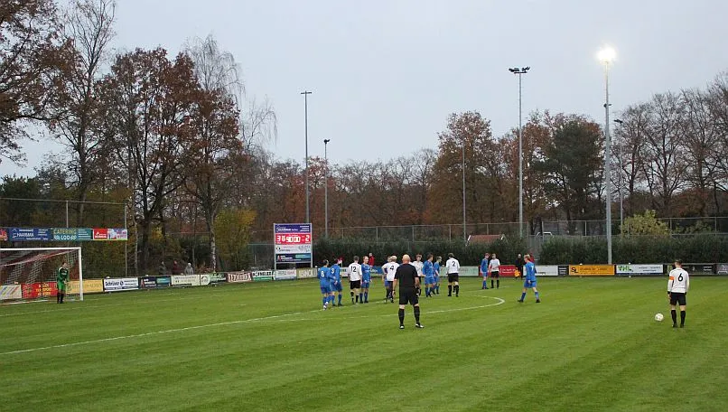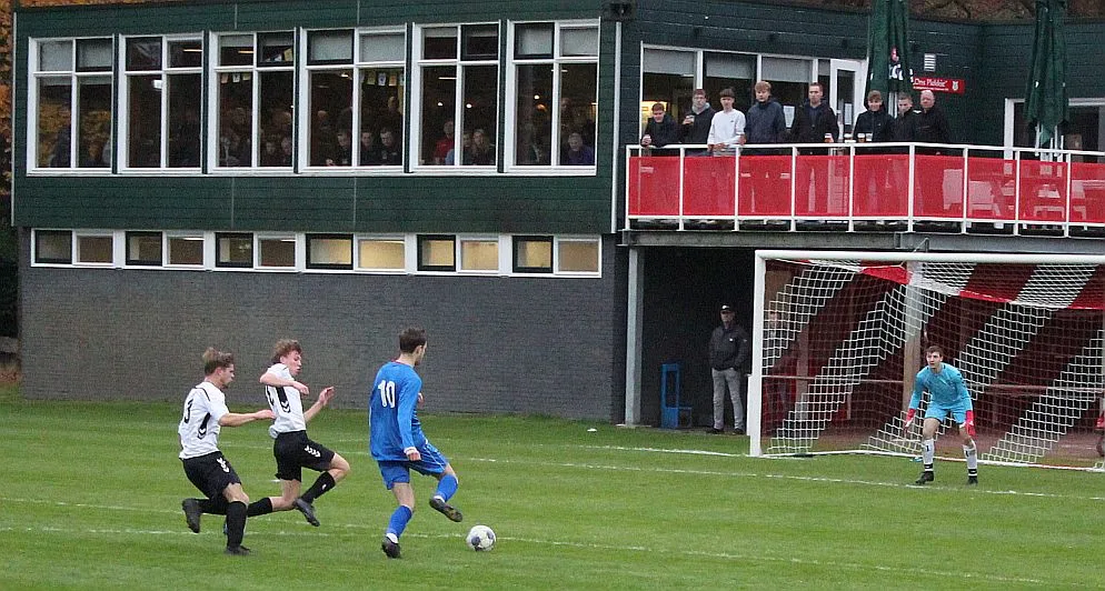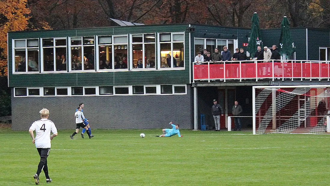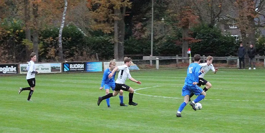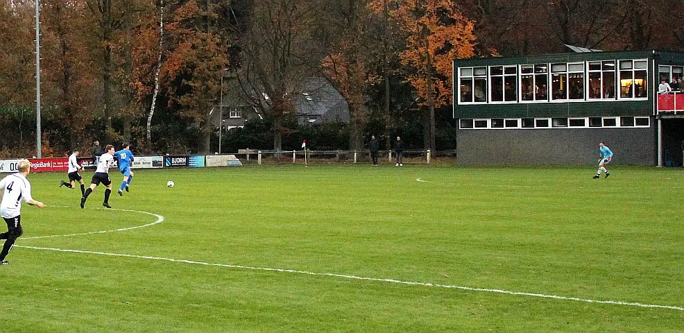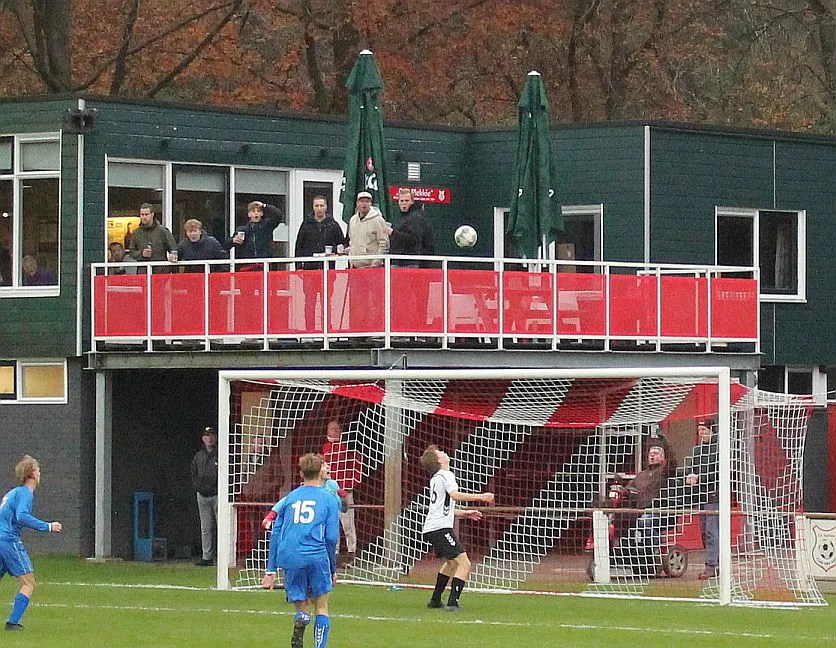 Maar als het moet dan herpakt Harfsen zich weer, de wedstrijd komt weer in evenwicht, het kan beide kanten op. Bram heeft twee kansen op rij, van dichtbij jaagt hij de bal met rechts net over het doel en even later met zijn linker trapt hij vol van de rand zestien de bal op onderkant lat. Die springt net voor de lijn omhoog zodat de keeper alsnog, uit eerst geslagen positie, de bal kan oppikken.