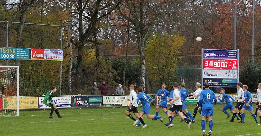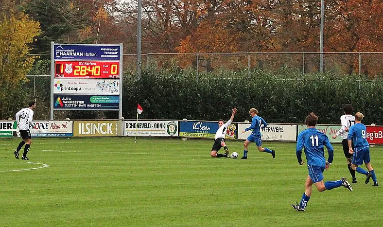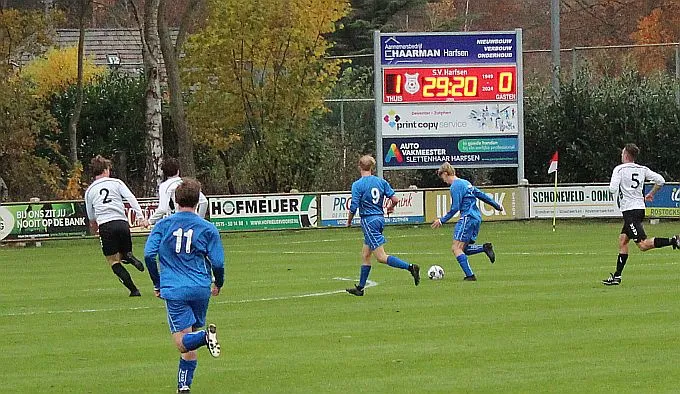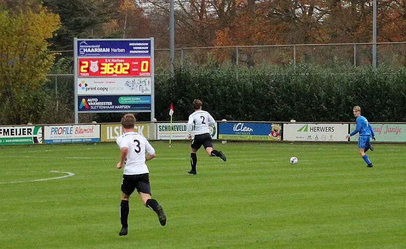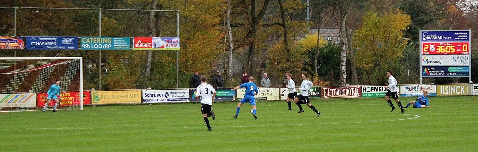 Harfsen moet de wedstrijd eigenlijk direct al op slot gooien door één van de counters te maken maar met name Chiel is matig in de afronding. Toch lijkt het gebeurd met de spanning als Jochem uit een hoekschop van Chiel knap raak kopt, daar is de bevrijdende 3-0 uit Harfsens oogpunt.