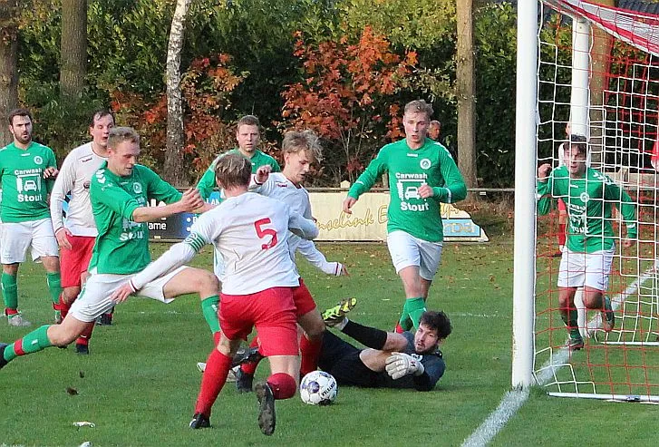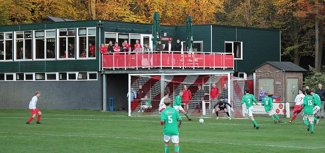 Harfsen heeft door gewisseld en een paar spelers hebben flink op de kloten gekregen maar het heeft wel wat effect. Er komen een paar kansjes; Luc J komt door maar wordt met een ultieme slidig gestuit voor hij kan schieten. Thijs vindt de keeper bij zijn schot en Luc V heeft de radar verkeerd staan bij zijn kopbal. Het blijft dus spannend maar de druk neemt langzaam toe.