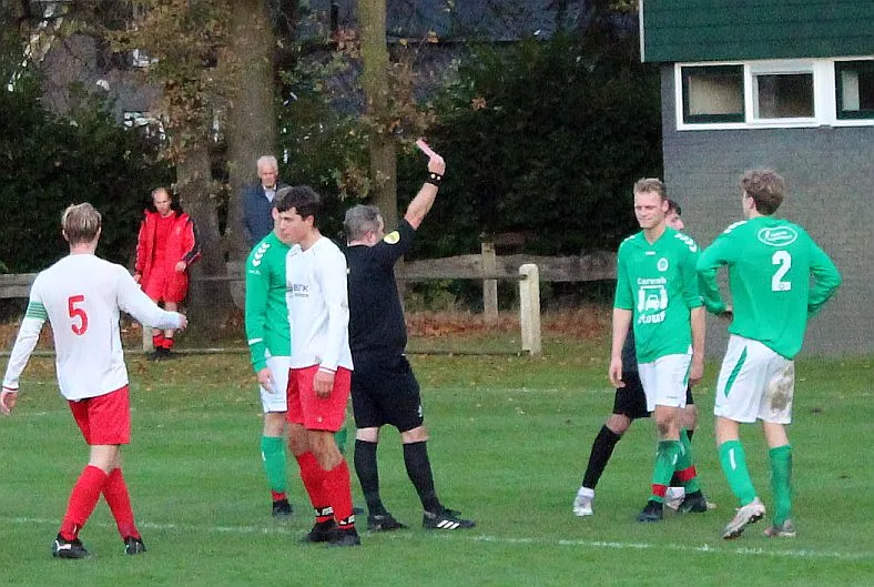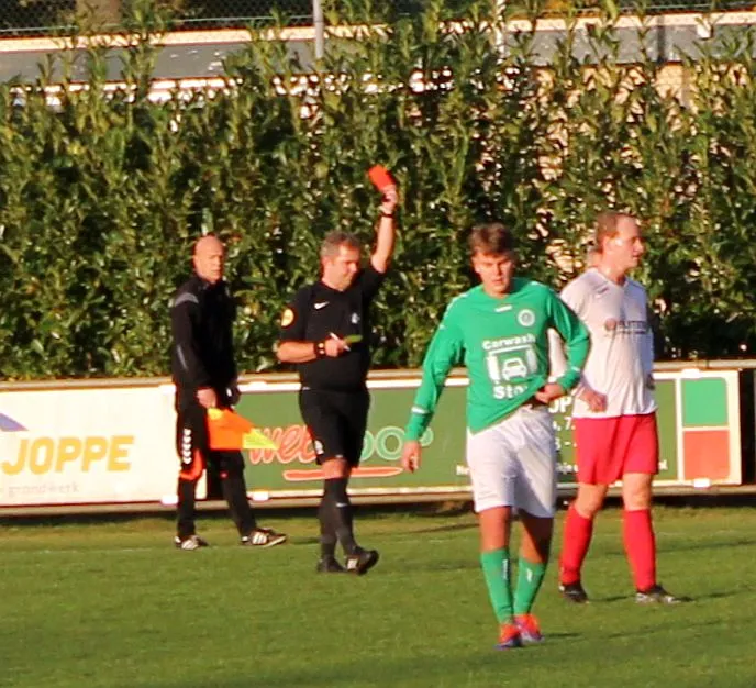 Helemaal als de één van de Boys de bal gauw wegtrapt als Harfsen een vrije trap snel snel wil nemen. De gele kaart is zijn tweede dus Dieren moet meer dan half uur zien vol te houden met 10 man. De druk neemt verder toe.