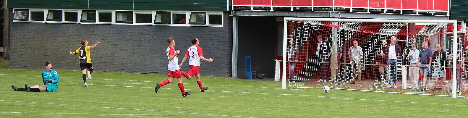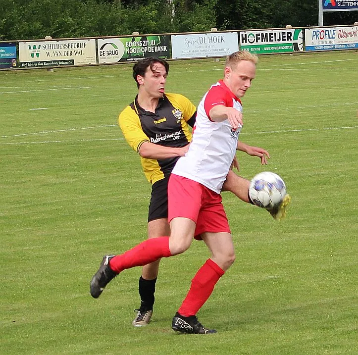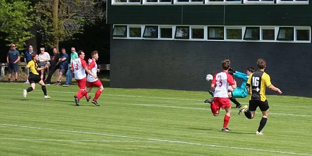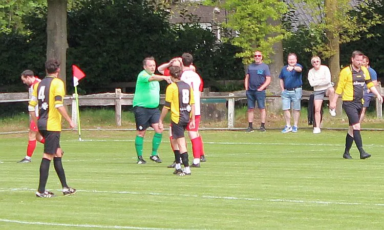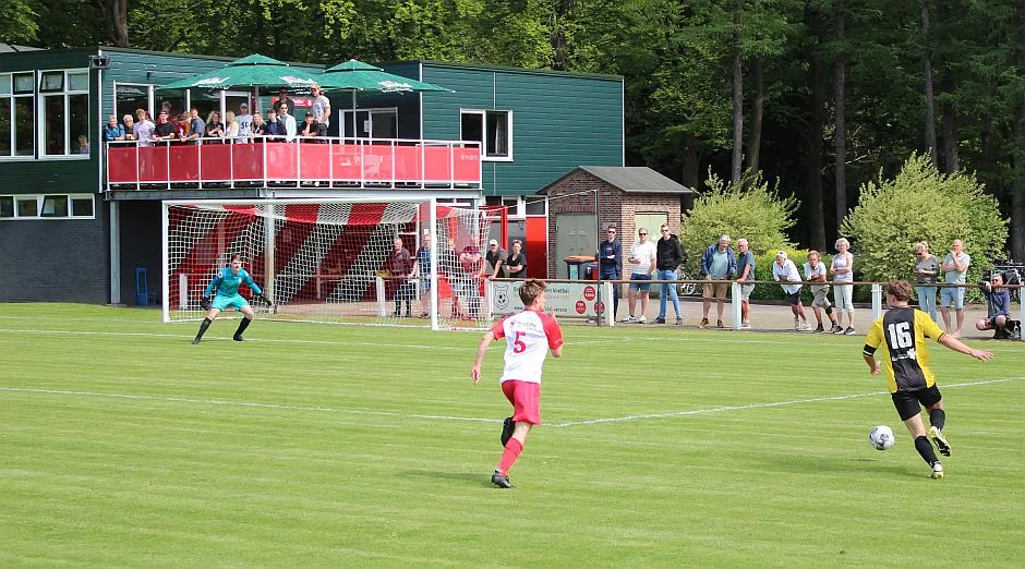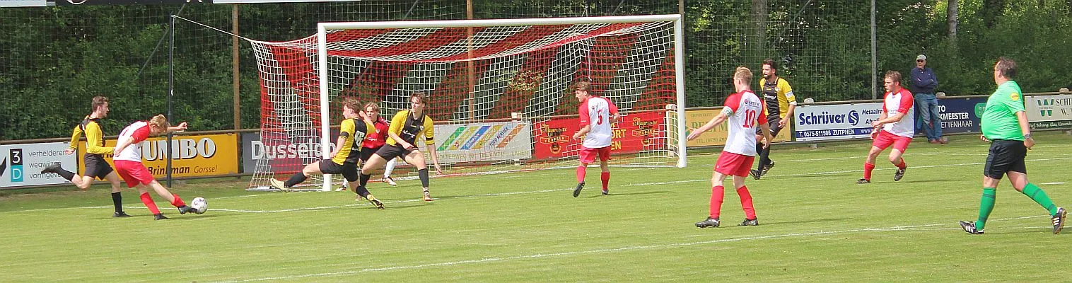Na deze meevaller is het toch weer Gorssel dat de overhand heeft. De verdediging heeft zijn handen vol aan de snelle buitenspelers. Het gaat fout als de bal de hoek in gaat en Dylan te laat is met zijn sliding. De vrije trap is terecht, dat ziet iedereen. Maar vriend en vijand is hoog verbaasd als de scheidsrechter, die eerst de overtreding buiten de zestien affluit, plotseling zijn besluit wijzigt en de bal op de stip legt. Tijdens het lopen ziet hij een polletje liggen en denkt dat dat de plek is waar de overtreding is gemaakt. In feite is het anderhalve meter verder, waar ook een polletje ligt. Maar eenmaal besloten doe je er niets meer aan, de bal gaat op de stip. Hard wordt die binnengeschoten, het is Stijn Obdeijn die de 1-2 maakt.