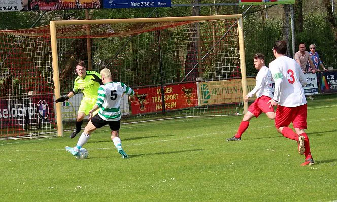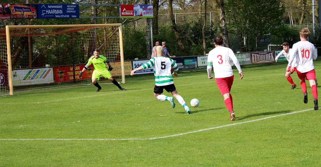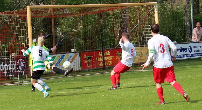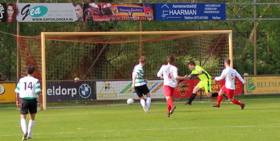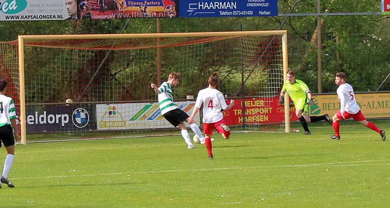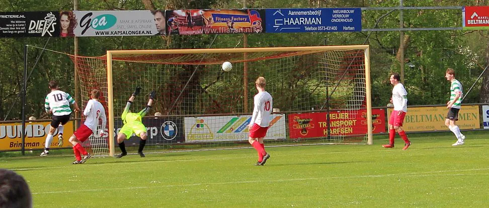 Harfsen - Drienerlo 3-5 (2-1). 21. Chiel Jimmink 1-0, 33. Eigen doelpunt 2-0, 38. 2-1, 62. 2-2, 64. Jimmink 3-2, 82. 3-3, 88. 3-4, 90. 3-5