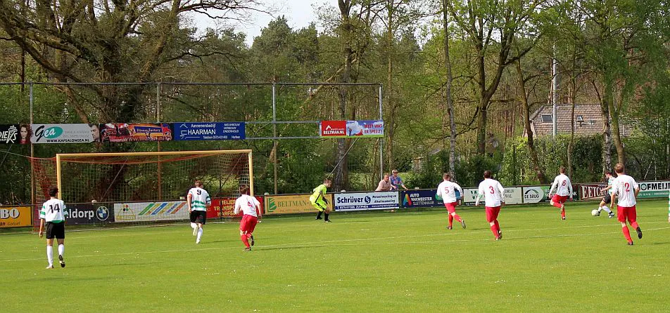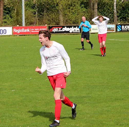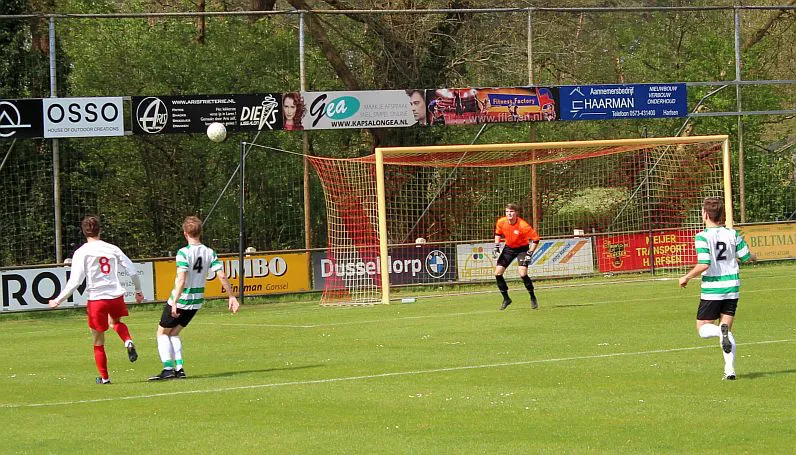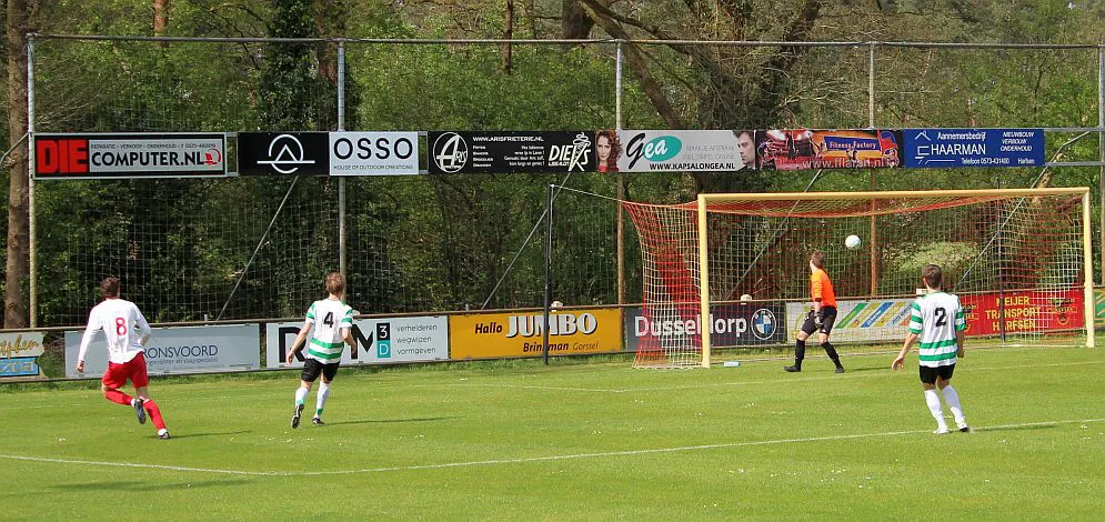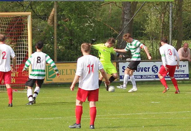 Nu is het zaak om door te drukken. Drienerlo is wat van slag en laten het gebeuren, 10 minuten later is het weer Chiel die de achterlijn haalt, schiet strak voorlangs in een poging zijn broer te bereiken maar er zit een been van Drienerlo tussen. Helaas voor hem betekend dit een eigen doelpunt. 2-0 en de toeschouwers zijn tevreden, dit elftal is vandaag weer top, de stand is goed, het weer is goed, vandaag is het genieten.
