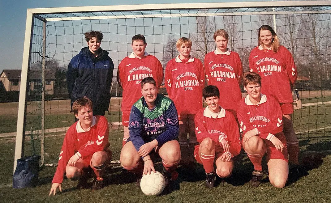 Weer gaan we terug in de tijd. De tijd dat we binnen de vereniging nog dames voetbal hadden. U denkt misschien; damesvoetbal is toch helemaal van deze tijd? Nu weer helemaal in opkomst? U heeft gelijk, het wordt hoog tijd dat de meiden van nu uit Harfsen de handschoen weer oppakken.