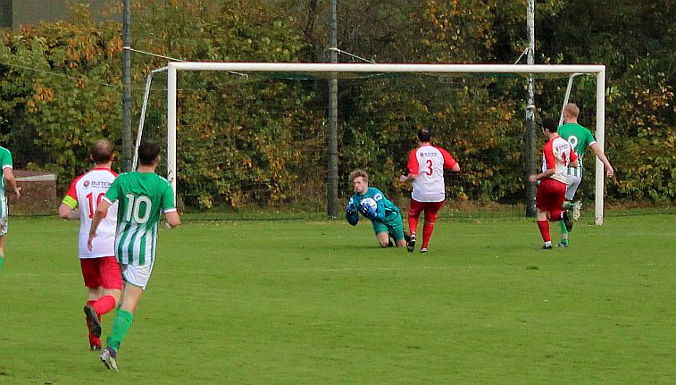 Na de thee was Bram na een uur spelen attent na een kopbal op de paal van Dylan en tikte de 0-4 binnen. Daarna sloop er wat gemakzucht in de ploeg waarvan Almen profiteerde 1-4 maar verder liet Harfsen het niet komen. Na een terechte rode kaart voor Almen na een onbesuisde tackle liep Harfsen via Luc Valkeman en de ingevallen Jasper nog uit naar een ruime 1-6 overwinning zonder dat het tot het uiterste hoefde te gaan.