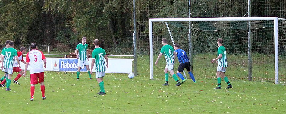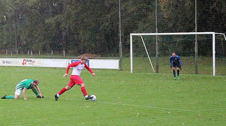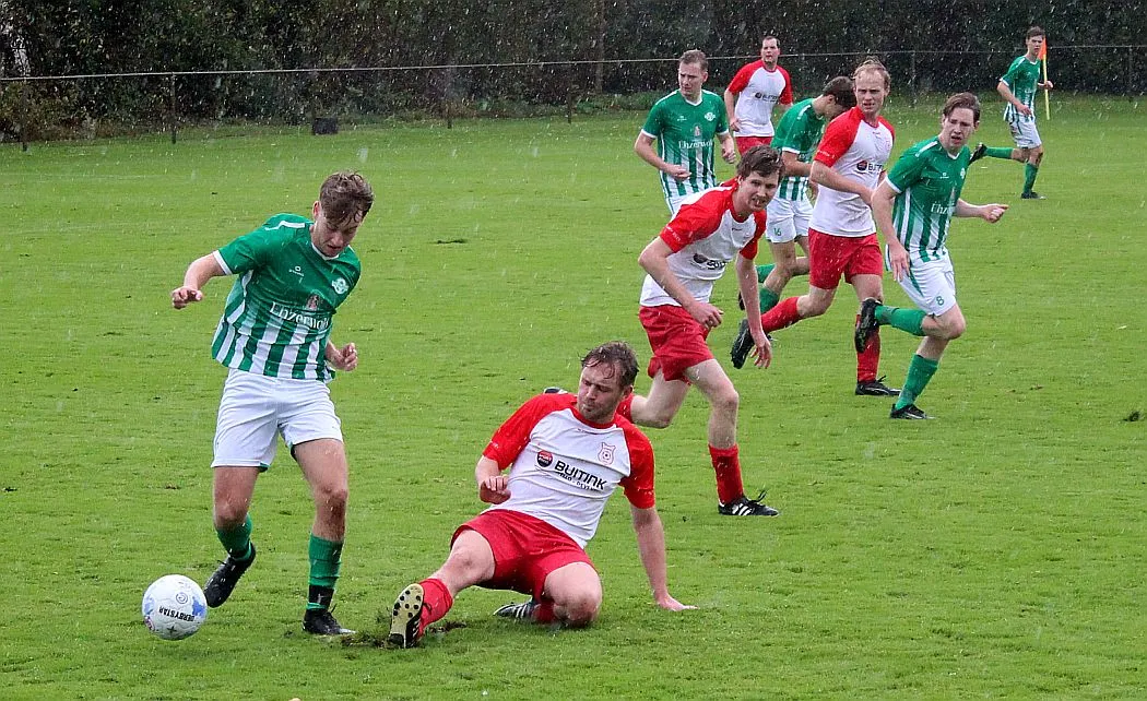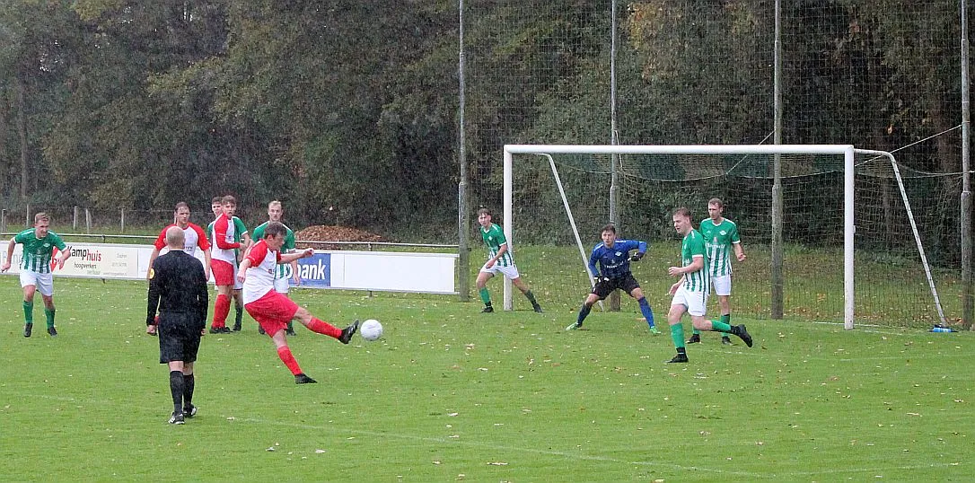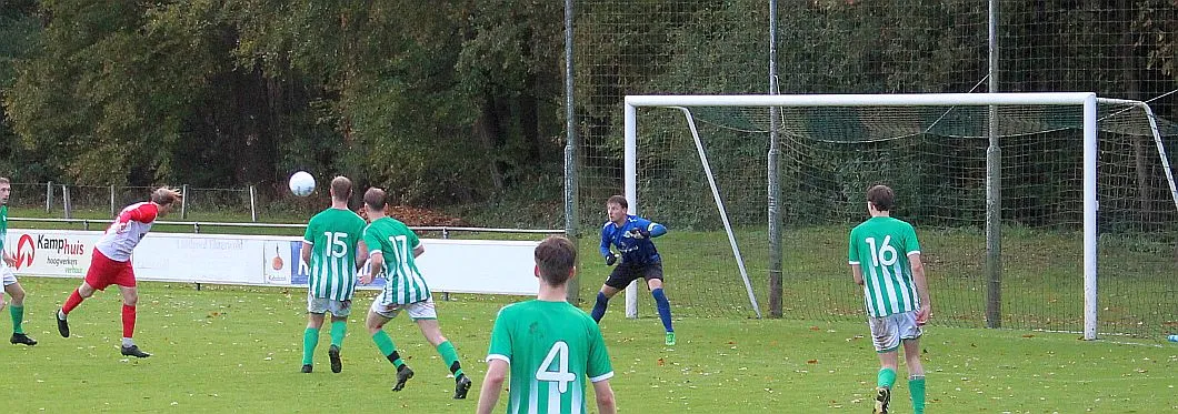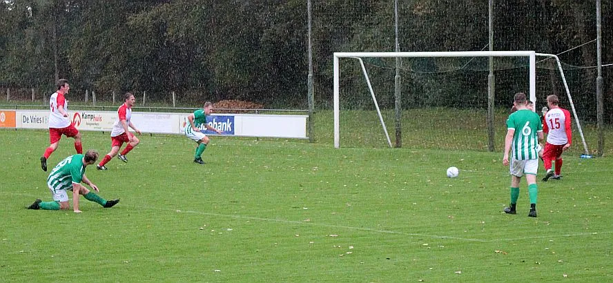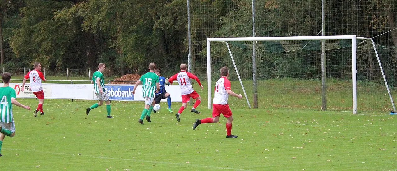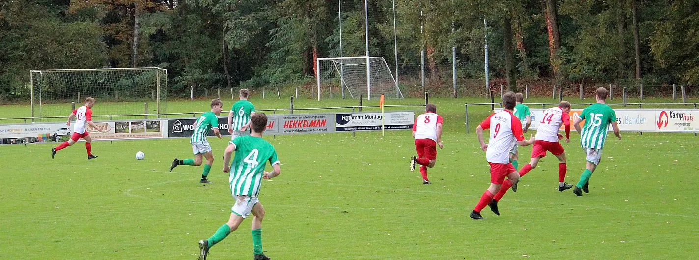 Tegen de buren van Almen boekte Harfsen deze middag een zeer eenvoudige 1-6 overwinning. Na een wat onwennig en slordig begin waarin Almen eerst nog een paar kleine mogelijkheden in de schoot werden geworpen, was Harfsen na de openingstreffer van Sven na 18 minuten heer en meester. Het begon beter te voetballen en bouwde gestaag een groot overwicht op en toen Bram na een krap half uur de 0-2 liet aantekenen was deze derby eigenlijk al gespeeld. Met de 0-3 door Chiel vlak voor rust was de spanning vervolgens helemaal verdwenen en was er geen moment meer sprake van een echte wedstrijd.