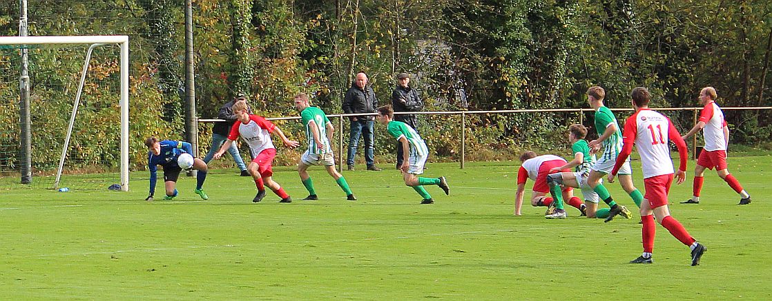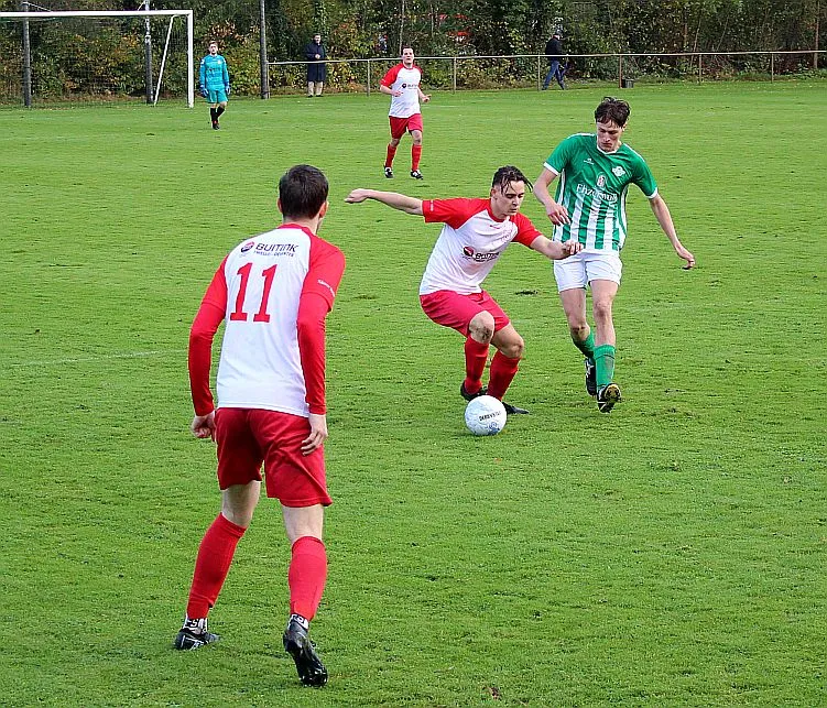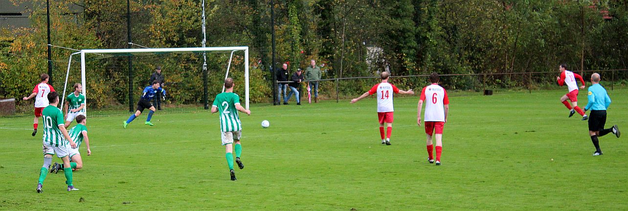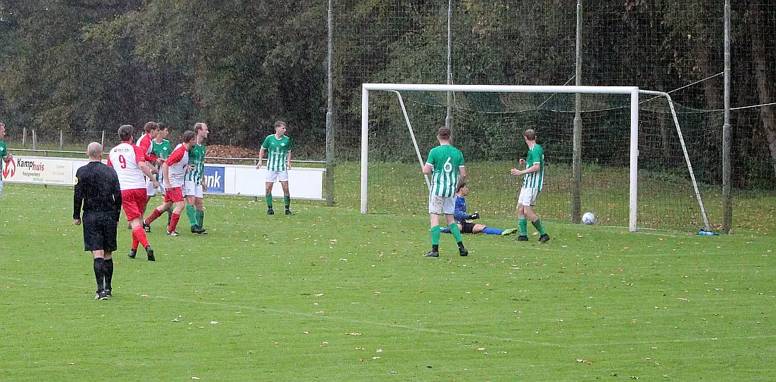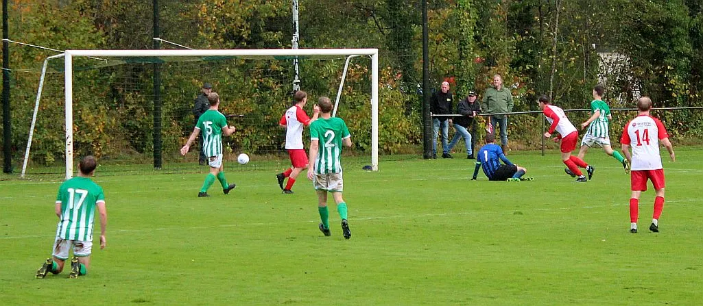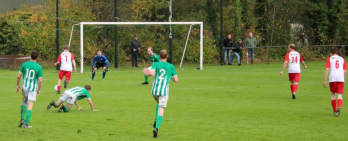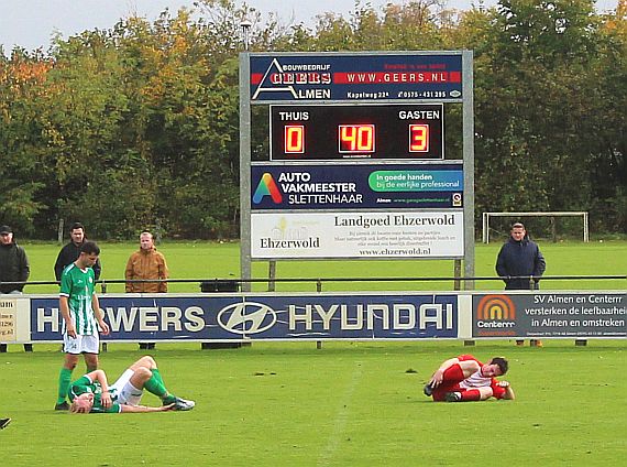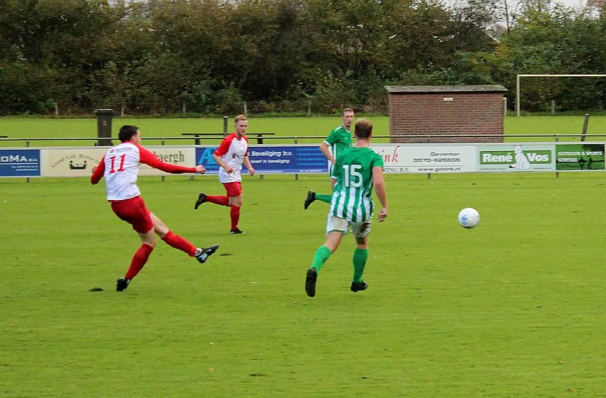 Tegen de buren van Almen boekte Harfsen deze middag een zeer eenvoudige 1-6 overwinning. Na een wat onwennig en slordig begin waarin Almen eerst nog een paar kleine mogelijkheden in de schoot werden geworpen, was Harfsen na de openingstreffer van Sven na 18 minuten heer en meester. Het begon beter te voetballen en bouwde gestaag een groot overwicht op en toen Bram na een krap half uur de 0-2 liet aantekenen was deze derby eigenlijk al gespeeld. Met de 0-3 door Chiel vlak voor rust was de spanning vervolgens helemaal verdwenen en was er geen moment meer sprake van een echte wedstrijd.