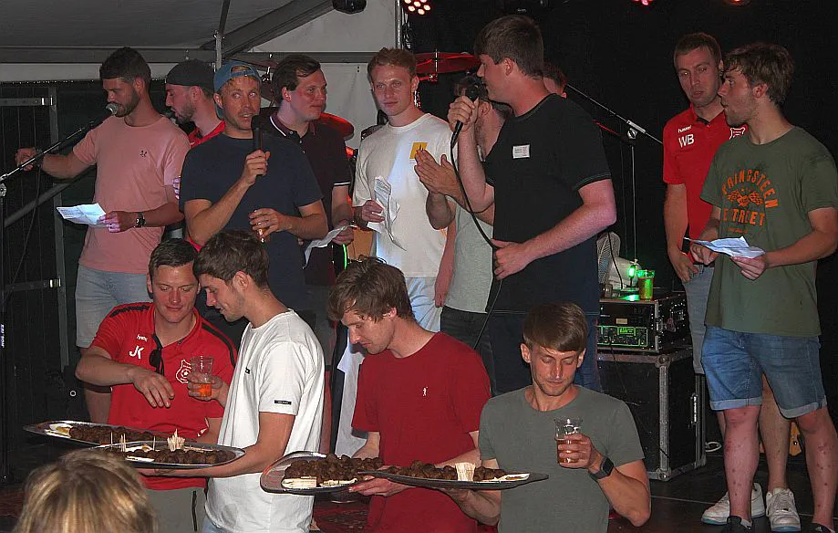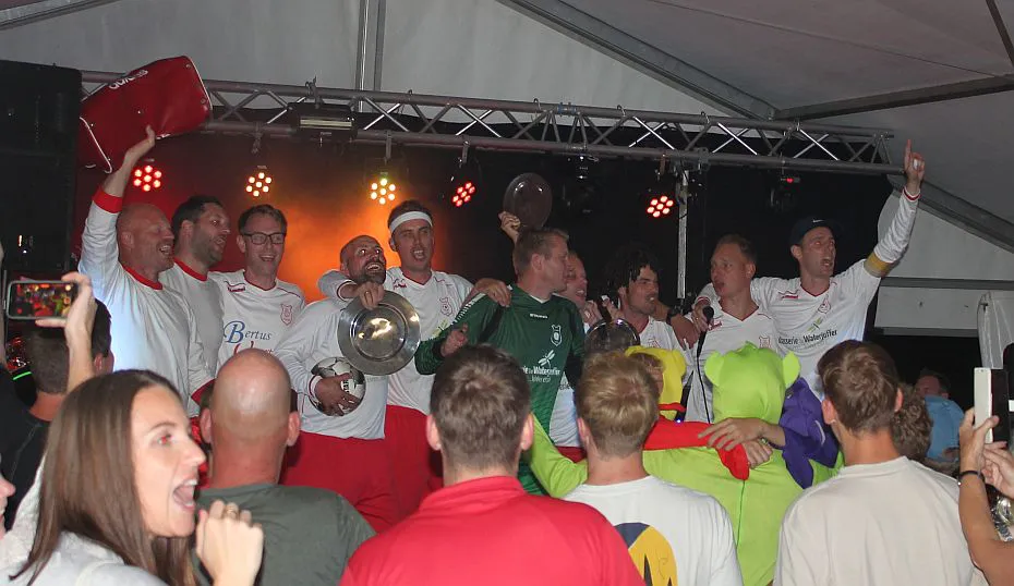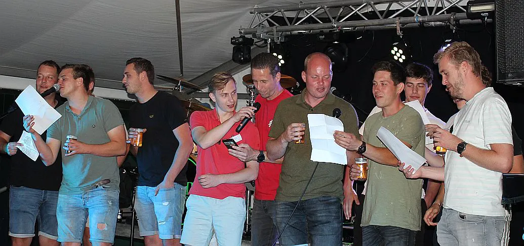 De dag werd hierna afgesloten met een knalfeest waarbij de (senioren)teams elk nog een ludiek stukje mochten opvoeren voor een uitzinnig publiek. Succes verzekerd uiteraard en alle aanwezige leden, oudleden, vrijwilligers, sponsoren en supporters genoten onder genot van een hapje en drankje en een prima band met volle teugen van de bruisende avond.