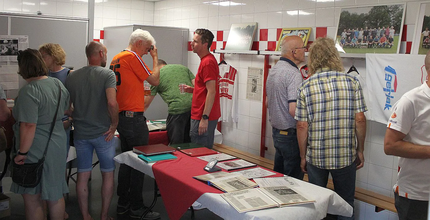 Om 16.30 uur was het tijd voor een heuse reünie en hierbij was een schitterende fotocollage in de kleedkamers te bewonderen waarmee oude (sterke) verhalen met elkaar konden worden gedeeld en uitgewisseld.