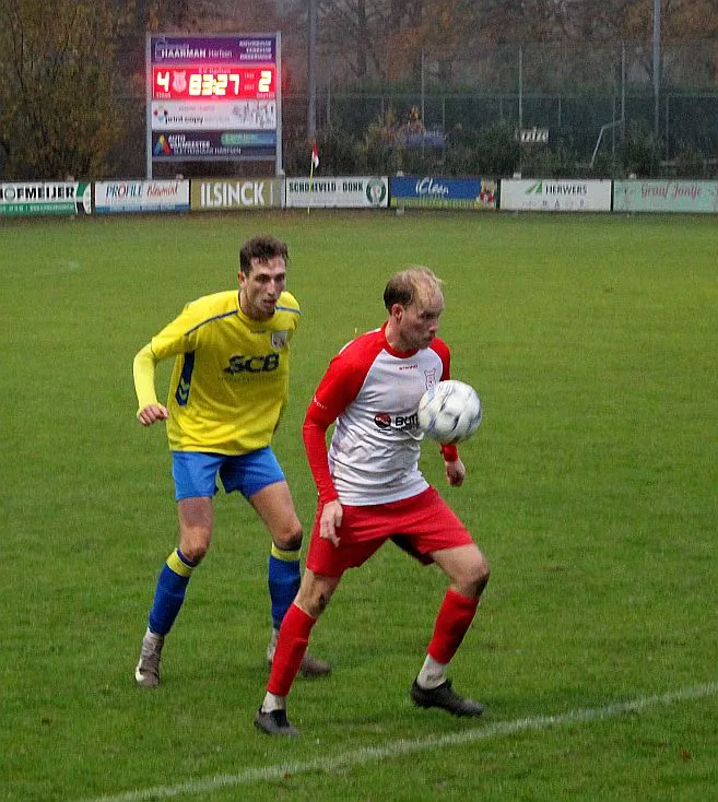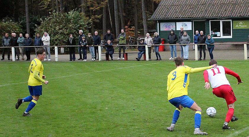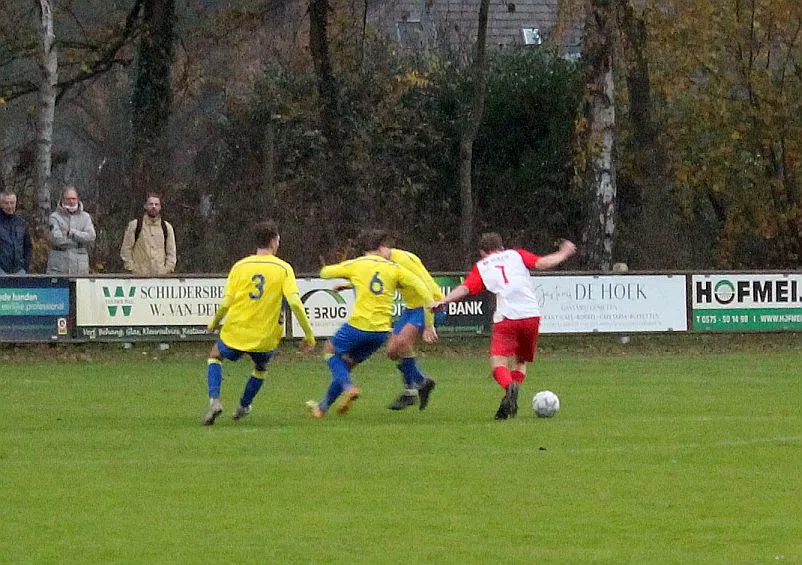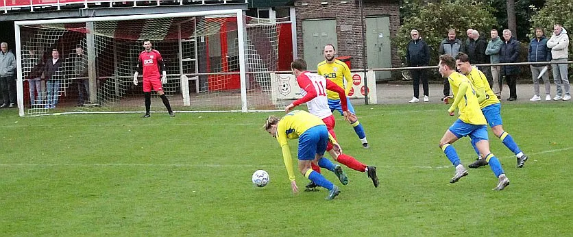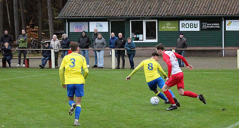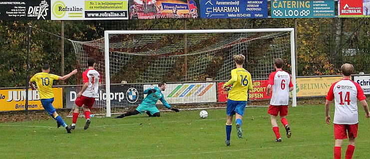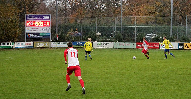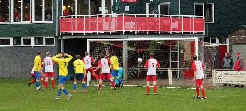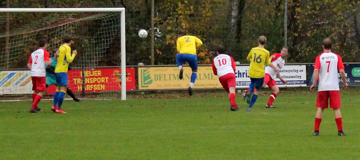 Harfsen kreeg meer zelfvertrouwen en groeide in de wedstrijd die daarmee veel meer in evenwicht kwam. Brummen bleef desondanks gevaarlijk via de vleugels en meerdere corners zorgden voor een aantal hachelijke situaties voor de goal van Thom maar deze keepte vandaag een ijzersterke pot en hield zijn doel vooralsnog schoon. Op slag van rust liet Harfsen zien hoe je een corner omzet in een doelpunt en weer was het een telg uit de familie Klumper die doel trof. Dylan positioneerde zich goed in alle drukte in het strafschopgebied en kon de bal na slim doorkoppen van broer Jasper van dichtbij afronden (2-0). Een paar tellen voor het rustsignaal van de sterk leidende scheidsrechter kreeg Brummen nog een dot van een kans op de aansluitingstreffer maar via onderkant lat bleef ook deze poging van de gasten zonder resultaat waardoor met een wellicht iets gelukkige 2-0 ruststand de thee werd opgezocht.