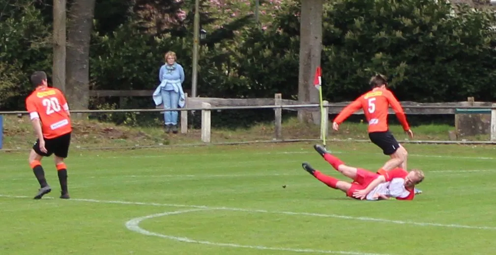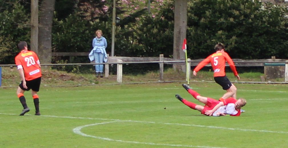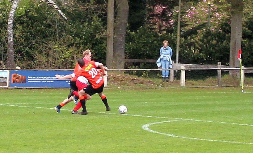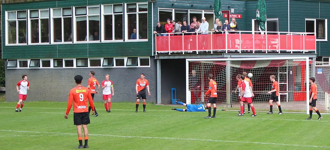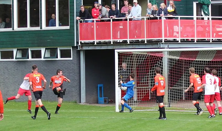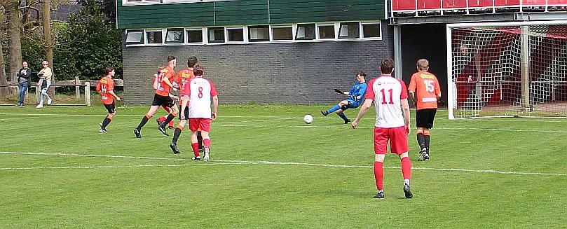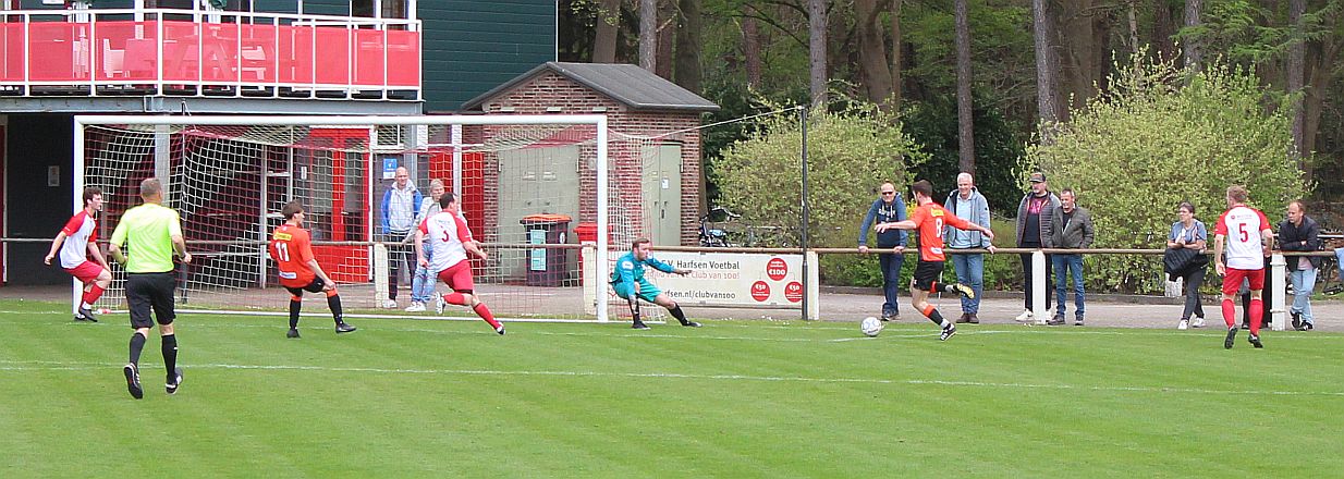 Harfsen begon de wedstrijd nog wel overtuigend en pakte via Bram na 10 minuten een snelle voorsprong maar daarna werd het spel slordiger. Er kwam veel ruimte te liggen tussen de linies en de gasten kregen zeker drie grote mogelijkheden om ook te scoren maar Thom en eigen onkunde voorkwam de gelijkmaker. Tussendoor waren er ook voor Harfsen ondanks het mindere spel nog genoeg kansen om te scoren maar beide ploegen weigerden de trekker vaker over te halen zodat met een 1-0 stand de kleedkamer werd opgezocht na 45 minuten.