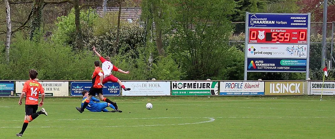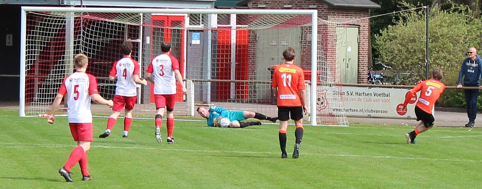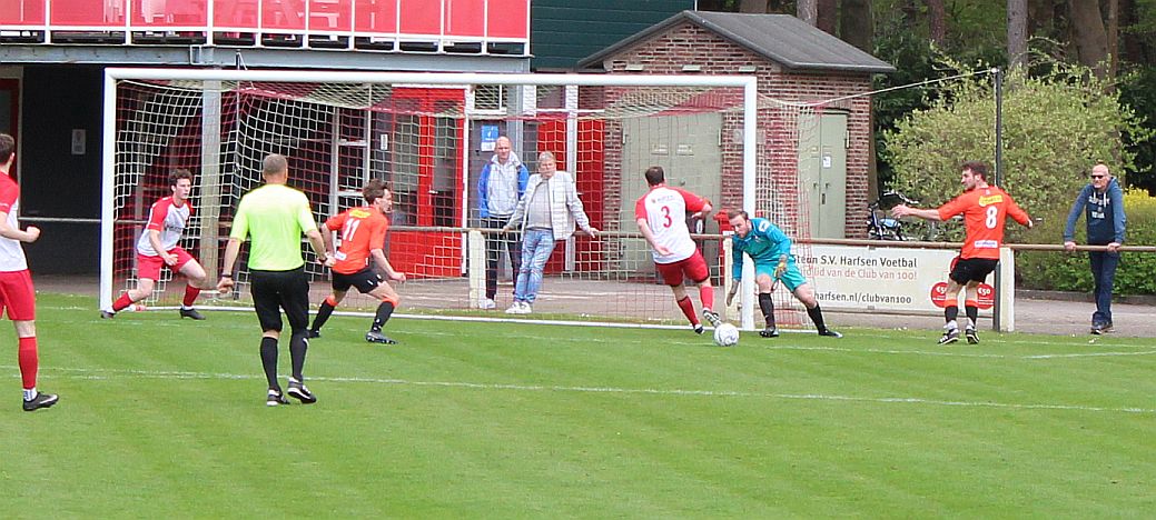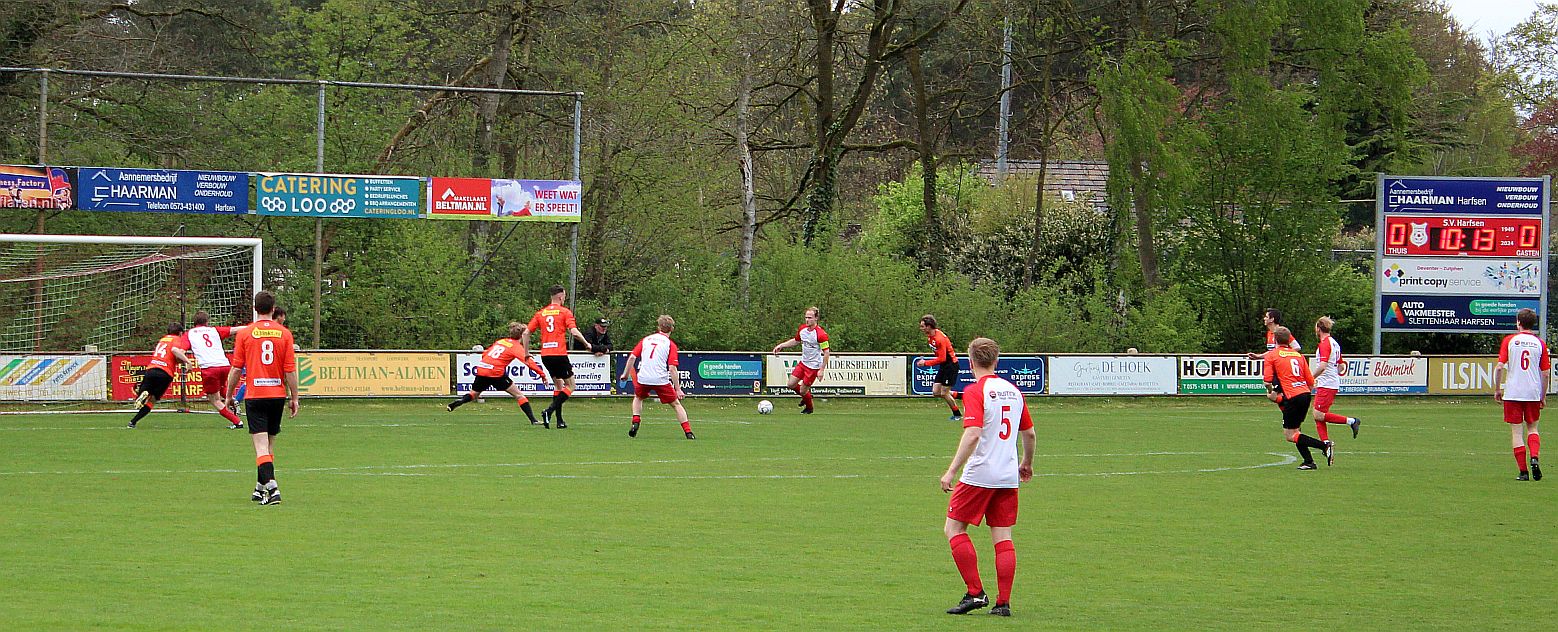 Er rest nu na een komende lange wedstrijdloze periode nog maar één competitiewedstrijd op 16 mei a.s. in Dieren tegen de plaatselijke Boys. De meest waarschijnlijk uitkomst van dit seizoen is een toetje in de nacompetitie op 30 mei en bij winst volgt dan een week later een finale wedstrijd op 6 juni. Hopelijk krijgt Harfsen de kans zichzelf te belonen voor een prima seizoen waarin men vaak goed voetbal en veel doelpunten heeft laten zien.